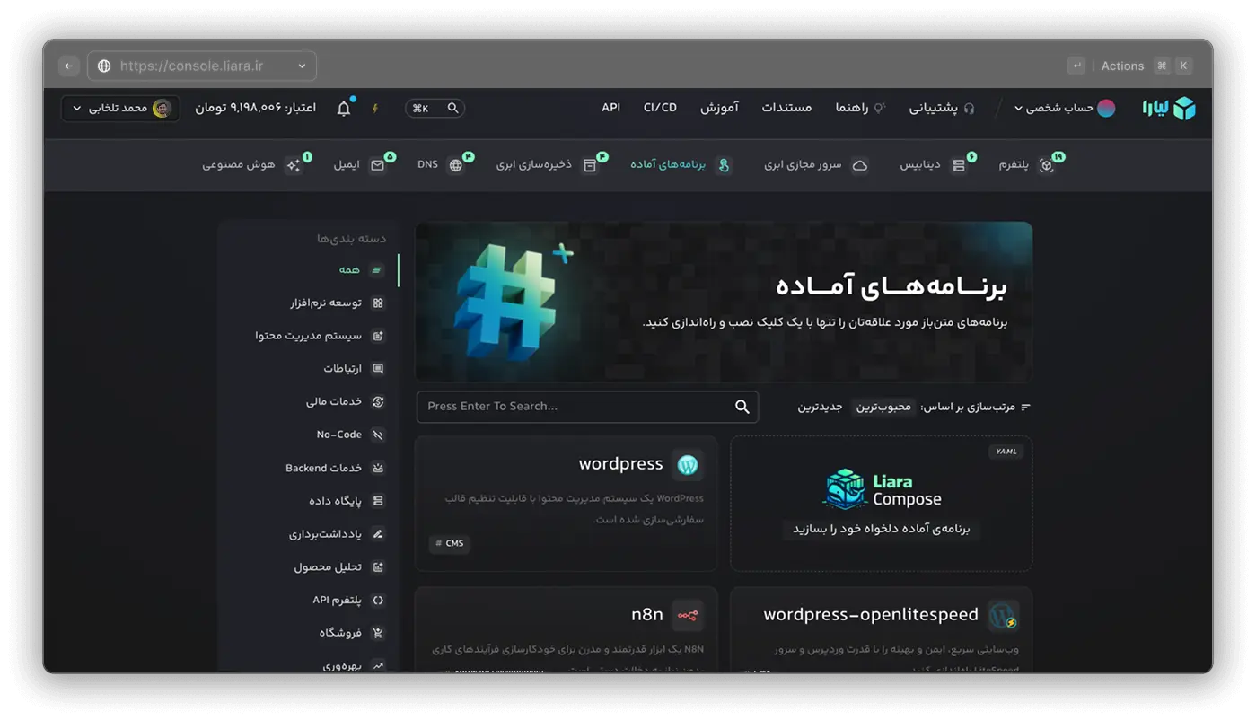 با Liara CLI، انعطاف بیشتری برای مدیریت سرویسهای خود دارید.