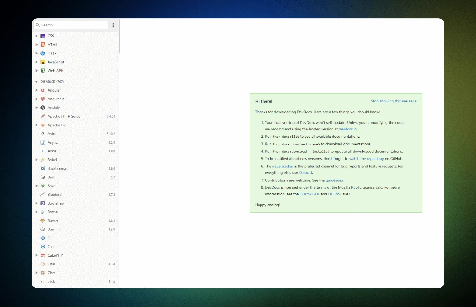 DevDocs با طراحی مینیمال، جستجوی قدرتمند و پشتیبانی از حالت آفلاین، تجربهای تقریباً بینقص برای مرور مستندات فراهم میکند. کافی است مستندات مورد نیاز خود را یکبار دانلود کنید تا حتی بدون اینترنت هم بتوانید از آنها استفاده کنید.